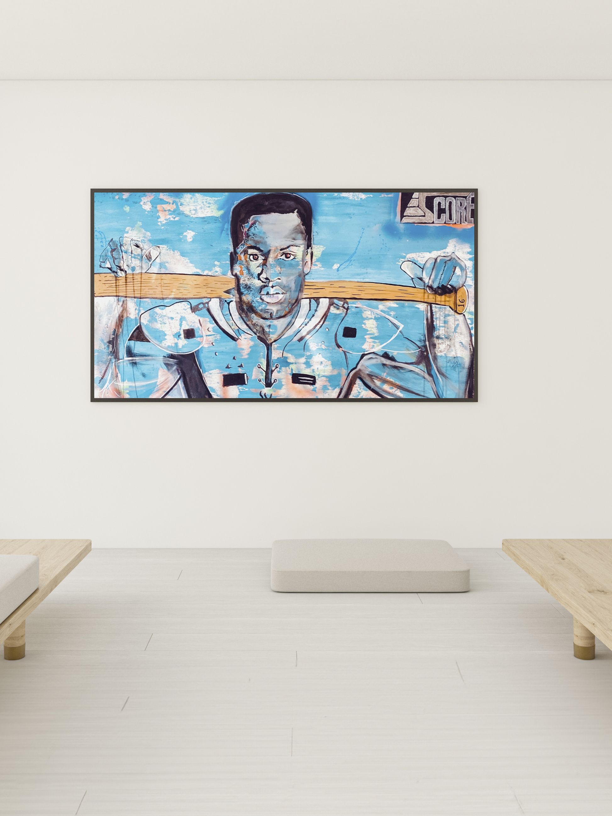 Harness the raw athleticism and iconic legacy of Bo Jackson with "Core Strength," a striking art print by Brady Matthews. This piece captures the dual-sport legend's intensity and focus, portraying the determination that made him an enduring symbol of power and versatility. Brady's expressive strokes and vivid color palette pay homage to Jackson's larger-than-life persona, set against a backdrop that seems to echo the very energy he brought to every game.