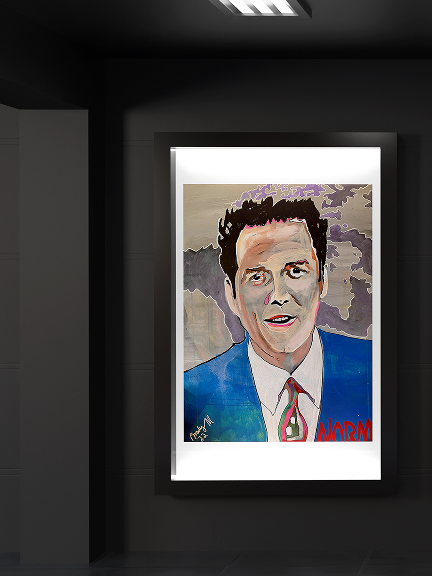 Celebrate the comedic brilliance of Norm Macdonald with our captivating colored print! From his iconic time on Saturday Night Live to his unforgettable stand-up performances, he brought a unique and subversive approach to humor. This artwork flawlessly captures Macdonald's dry wit, deadpan delivery, and one-of-a-kind comedic style. Display it proudly in your entertainment room, comedy den, or any space where you want to pay homage to this legendary comedian.