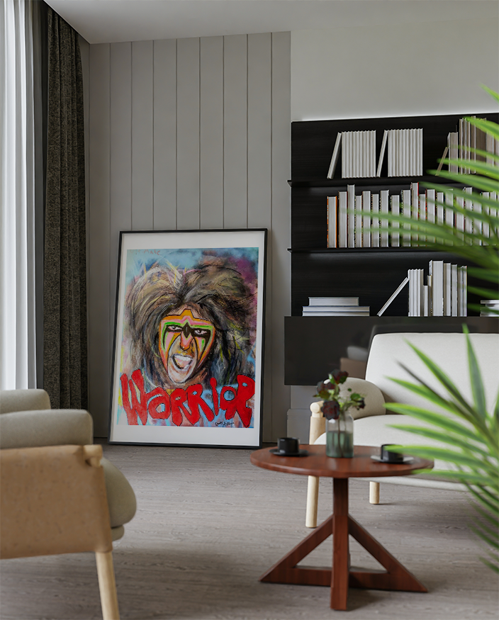 Celebrate the wrestling legend The Ultimate Warrior with our captivating colored print! From his high-octane ring entrance to his explosive in-ring style, The Ultimate Warrior has left an indelible mark on the world of professional wrestling. This artwork flawlessly captures Warrior's electrifying presence, unmatched intensity, and larger-than-life persona. Display it proudly in your man cave, entertainment room, or any space where you want to pay homage to the greatness of this wrestling icon.